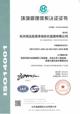 環(huán)境管理體系認(rèn)證證書