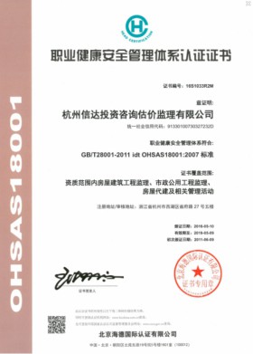 職業(yè)健康安全管理體系認(rèn)證證書