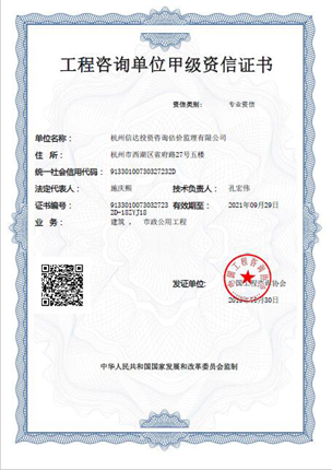 工程咨詢單位甲級資信證書