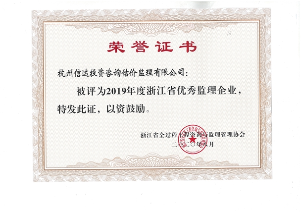 2019年度浙江省優(yōu)秀監(jiān)理企業(yè)