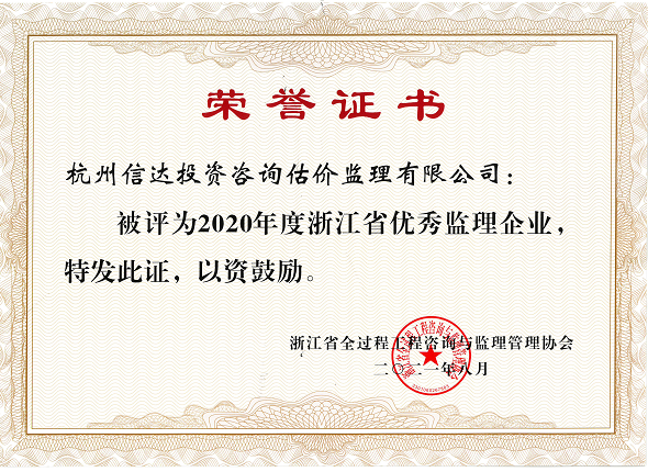 2020年度浙江省優(yōu)秀監(jiān)理企業(yè)