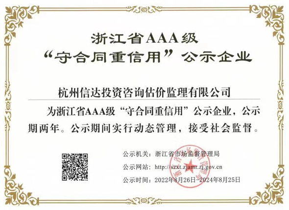 浙江省工程造價咨詢品牌企業(yè)